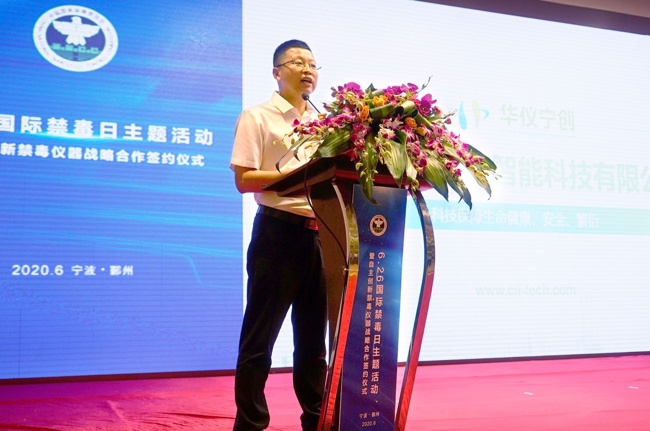 寧波華儀寧創(chuàng)智能科技有限公司總經(jīng)理聞路紅在致辭中首先表達(dá)了對奮戰(zhàn)在禁毒一線公安民警的崇高敬意,同時(shí)也對鄞州公安分局支持將國家公共安全重大專項(xiàng)成果應(yīng)用示范于禁毒實(shí)戰(zhàn)工作表示誠摯感謝。他介紹說,華儀寧創(chuàng)是鄞州區(qū)“一企一策”重點(diǎn)引進(jìn)和支持發(fā)展的科技創(chuàng)新企業(yè),2018年承擔(dān)了國家公共安全重點(diǎn)研發(fā)計(jì)劃“毒品違法犯罪監(jiān)測預(yù)警關(guān)鍵技術(shù)研究和應(yīng)用示范”項(xiàng)目,成功研制了專用于吸毒人員篩查和毒品查緝的便攜式質(zhì)譜儀等成果,可用于對吸毒人員的毛發(fā)、唾液、尿液等生物樣本的快速、準(zhǔn)確篩查,也可用于傳統(tǒng)毒品和新精神活性物質(zhì)(含芬太尼類物質(zhì))的現(xiàn)場緝查確認(rèn)。華儀寧創(chuàng)希望通過此次與鄞州公安分局的應(yīng)用示范合作,一起將鄞州區(qū)打造成為全市、全省乃至全國在科技禁毒、警民融合發(fā)展領(lǐng)域的成功樣板案例!