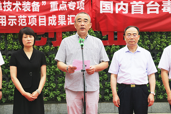 浙江省公安廳二級巡視員蔄牛代表浙江省禁毒委員會辦公室在啟用儀式上致辭。他充分肯定了華儀寧創(chuàng)依托“國家公共安全重點研發(fā)計劃”項目自主創(chuàng)新毒品防控移動實驗室的價值,并期待該成果能夠在新時期的禁毒戰(zhàn)場上發(fā)揮重要作用,并成為浙江省禁毒科技創(chuàng)新代表性的科技成果。