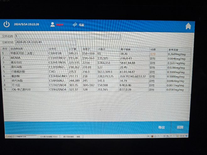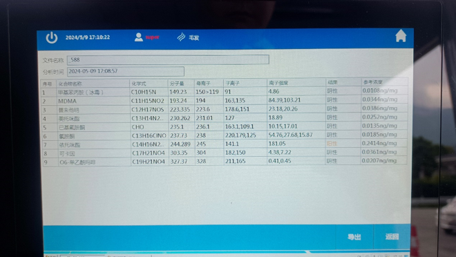 比武期間,我司小質譜協助破獲涉毒案件7個,抓捕嫌疑人9人。廣元地區共發現查獲吸毒人員3人,分別是依托咪酯1例、冰毒1例、海洛因1例,排除攜帶的可疑物質約10份;瀘州地區共發現查獲吸毒人員6人,均為冰毒陽性。