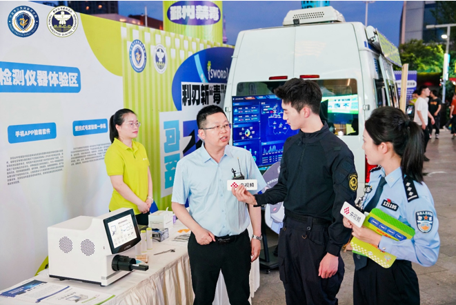第37個國際禁毒日來臨之際,為進一步提升群眾拒毒防毒意識。6月25日,鄞州公安聯合鄞州區禁毒委員會、中河街道辦事處等單位共同舉辦了利刃斬“毒”手,向陽不“毒”行禁毒宣傳活動。寧波華儀寧創智能科技有限公司作為公安禁毒領域的科技創新優秀企業代表,受邀參與此次活動,用科技為寧波禁毒事業助力。
