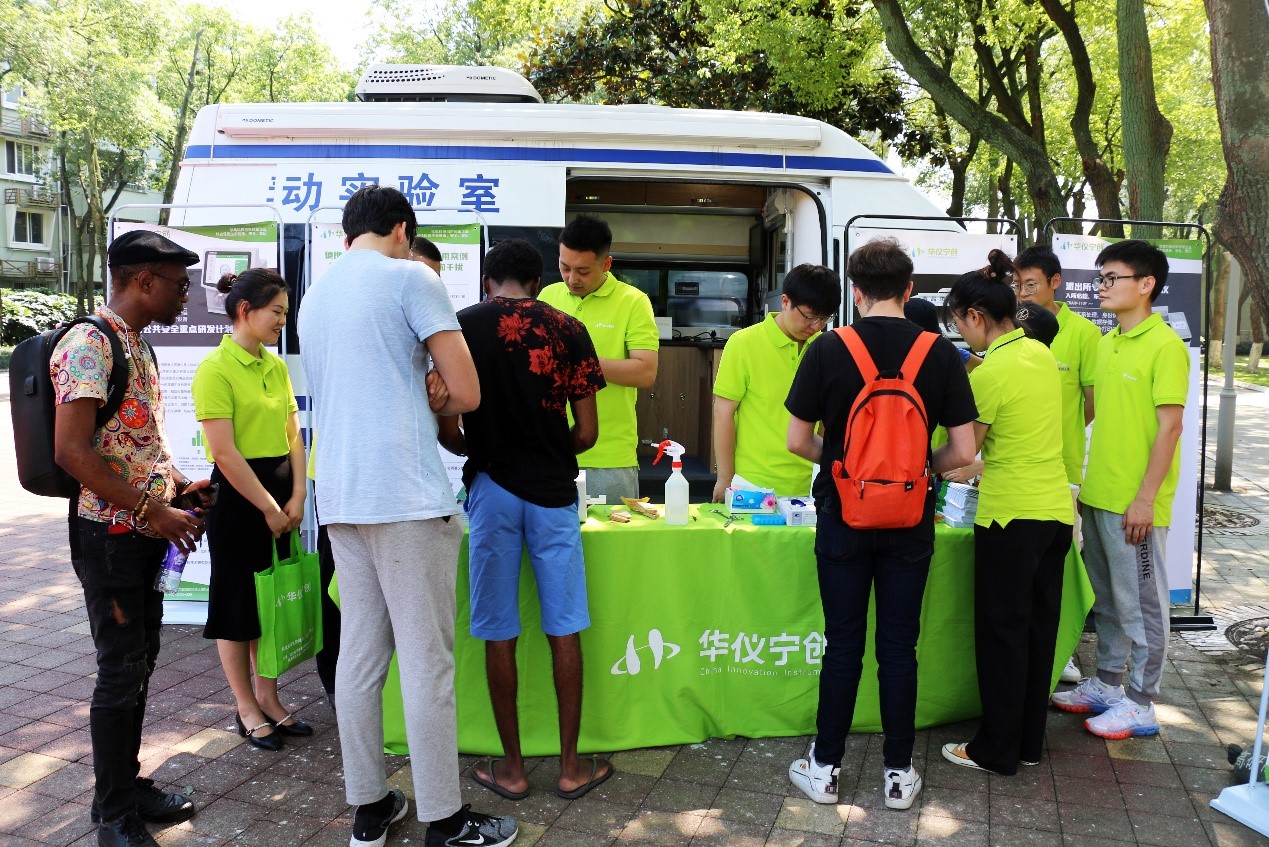 華儀寧創禁毒科普公益小分隊帶來的毛發毒品檢測裝備激發了廣大師生特別是留學生的好奇心。一位留學生在聽到幾根毛發就可以測出是否有吸毒史后,表示極為驚訝,并積極申請做一下體驗。當他快速準確檢測出標準樣本的毒品數值后,發出了“unbelievable(不可思議)”的稱贊。當他們又了解到這些禁毒裝備都是寧波大學的科技成果轉化產品,更是挑起了大拇指,對母校和華儀寧創發出了由衷的贊嘆。