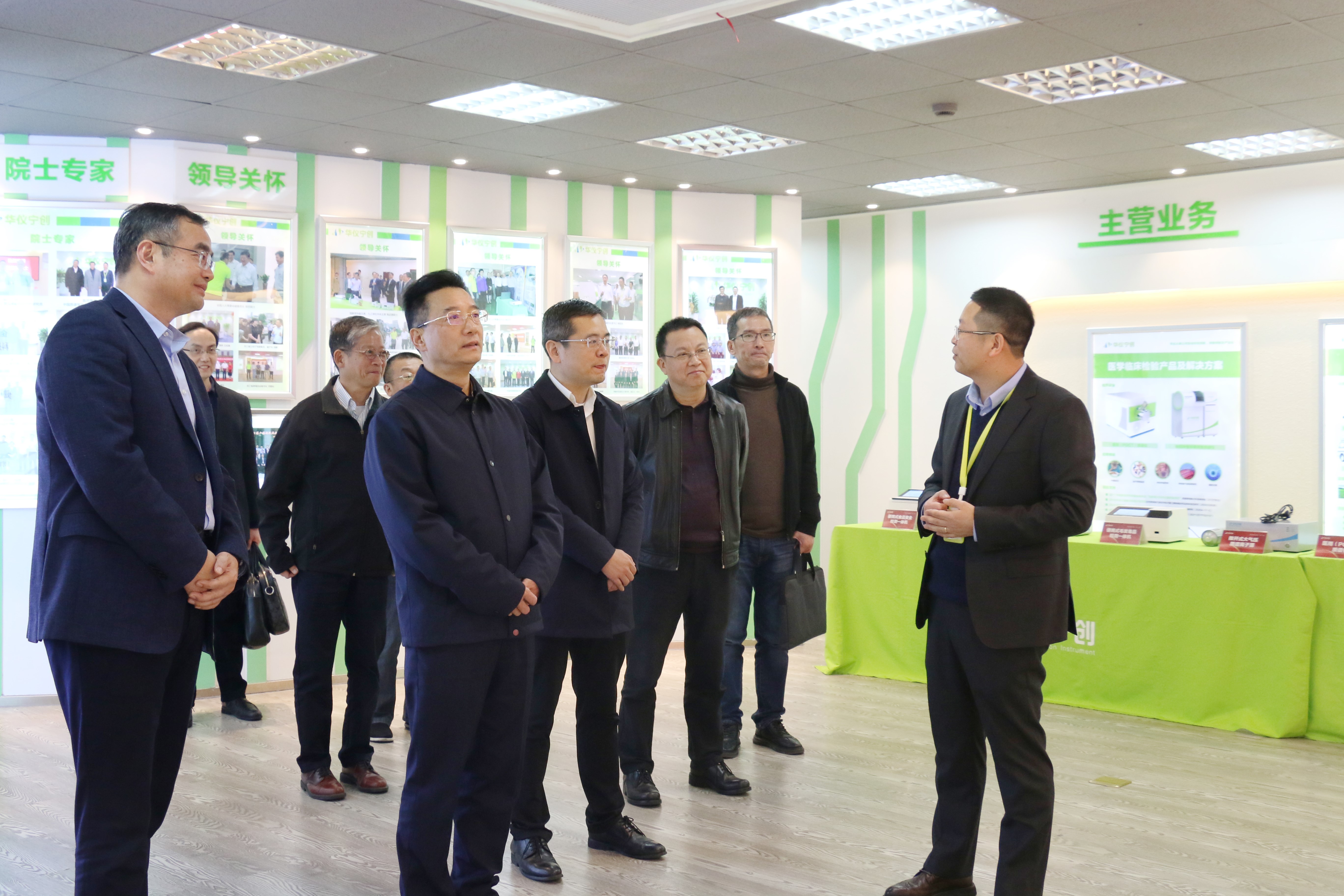 到訪的校領導和區領導還參觀了華儀寧創的展廳、實驗室以及生產制造中心。