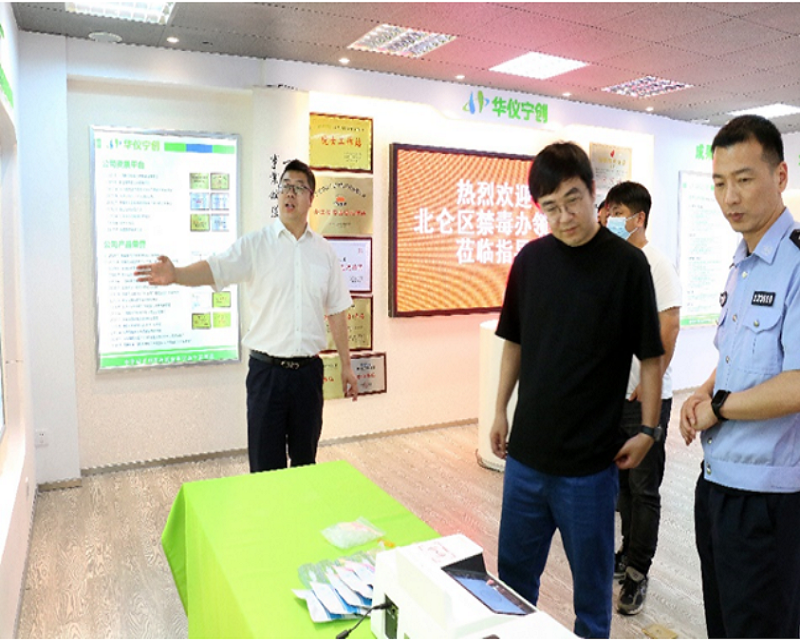 華儀寧創(chuàng)副總經(jīng)理畢磊熱情接待北侖區(qū)考察團(tuán),并向來訪領(lǐng)導(dǎo)和嘉賓詳細(xì)匯報(bào)了華儀寧創(chuàng)的發(fā)展歷程以及在公共安全領(lǐng)域的自主創(chuàng)新成果。他特別介紹:華儀寧創(chuàng)在國(guó)家、公安部及省市重點(diǎn)科技項(xiàng)目的支持下研制了多項(xiàng)高科技成果,目前已成功研發(fā)推出毛發(fā)驗(yàn)毒快速篩查質(zhì)譜儀、手機(jī)APP驗(yàn)毒、全自動(dòng)污水智能采樣器等禁毒黑科技,以此來支撐公安禁毒在裝備領(lǐng)域的高質(zhì)量建設(shè),并已廣泛應(yīng)用于一線實(shí)戰(zhàn)。對(duì)于維護(hù)人民健康和社會(huì)安全,華儀寧創(chuàng)的科技創(chuàng)新成果均已獲得良好的社會(huì)和經(jīng)濟(jì)效益。