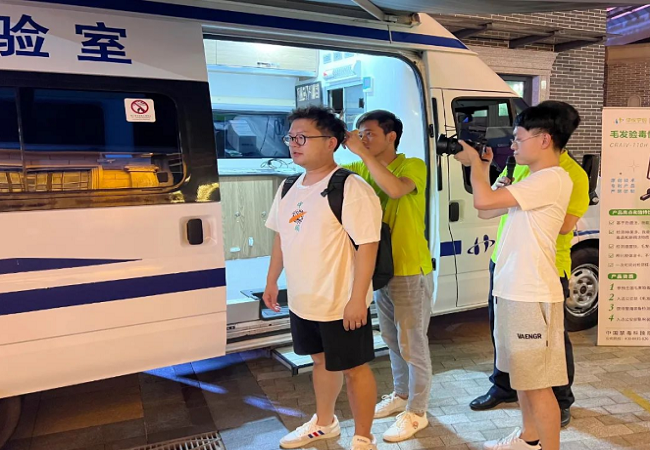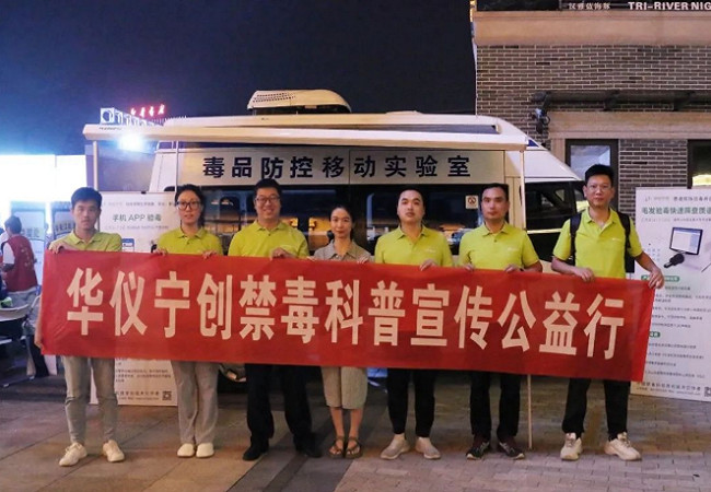 在華儀寧創禁毒科普公益小分隊的帶領下,現場群眾紛紛加入了解禁毒科技的行列當中,大家有序掃碼進行禁毒知識問答,并在現場認真聆聽工作人員講解華儀寧創多款禁毒黑科技的特點。對于小分隊帶來的便攜式毛發驗毒一體機和手機APP驗毒,現場群眾更是表現出濃厚的興趣,當大家了解到這些設備在幾分鐘內便能完成毒品檢測后,紛紛對禁毒科技的迅猛發展表示贊嘆。